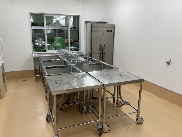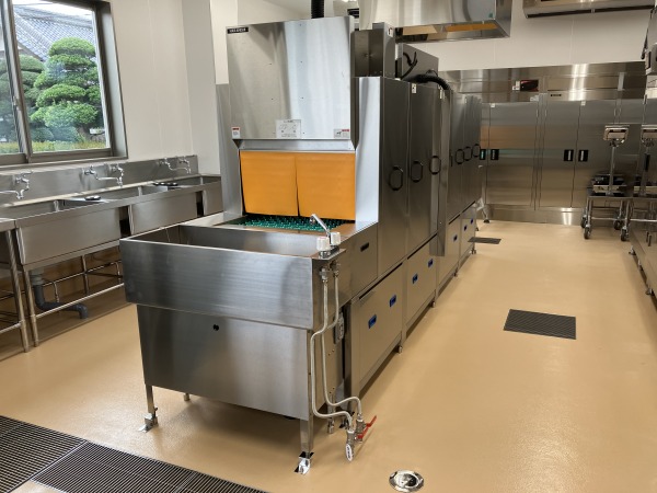 給食施設 給食センター(改修)給食センター様の改修で、洗浄機類一式・自動フライヤーを納品させて頂きました。 ■食器類洗浄システム(浸漬装置) ■食器類洗浄システム(食器洗浄機) ■食缶洗浄機 ■コンテナ洗浄機 ■自動フライヤー ■真空冷却機 |