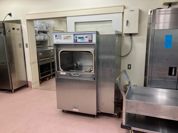 ■新設品 上下開きの扉から、横開きの扉に変更になった為、扉裏側の清掃も可能になりました。 オプションで、ホテルパンラック中棚の取付も可能です。 40㎏タイプの為、1回転あたり約350食の調理が可能です。