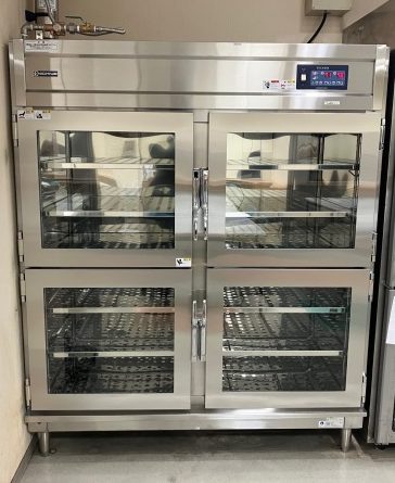 ■電気湿温蔵庫 ・加湿装置で食品に合わせ、加湿の調整が出来ます。 ・自在棚の為、庫内を有効に使用できます。 ・庫内は対流式の為、温度ムラが出来にくい仕様です。